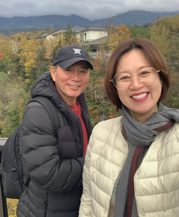 공개된 사진 속 박미선은 밝은 미소와 함께 안경을 쓴 지적인 모습으로 카메라를 응시하고 있으며, 곁에는 남편 이봉원이 검은색 캡 모자와 백팩을 매고 인자한 웃음을 짓고 있다. 두 사람은 단풍이 짙게 물든 산과 이국적인 가옥이 내려다보이는 야외에서 패딩과 머플러를 착용한 채 늦가을의 정취를 만끽하는 모습이다.