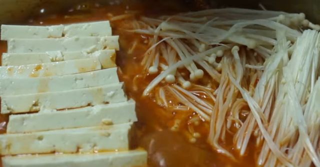 돼지고기 대신 두부를 넉넉히 넣으면 찌개가 훨씬 든든해진다. 양파는 단맛을, 대파는 향을 더해준다. 버섯이 있다면 더할 나위 없다. 특히 느타리나 팽이버섯은 고기 없는 찌개에 씹는 맛을 보완해준다. 재료가 많을수록 국물은 자연스럽게 깊어진다.