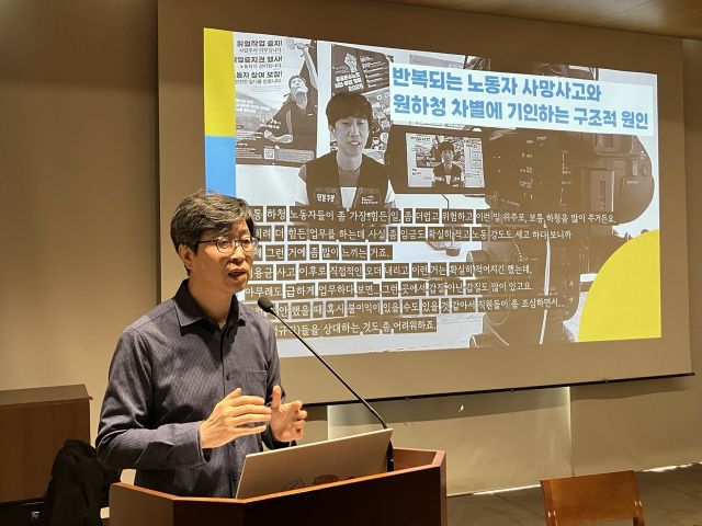 17일 오후 '석탄화력발전소 폐쇄와 발전비정규직 노동자의 삶과 운동 구술연구'(책임연구자 한재각) 결과 공유회가 서울 중구 프란치스코 교육회관에서 열렸다. 김영구 씨와 올해 말 폐쇄를 앞둔 태안 석탄화력발전소 1호기의 하청노동자 김영훈(32) 씨가 함께 발언자로 참가했다. 이들은 그동안 차별과 고된 노동을 감내하면서도 한국 사회에 전력을 보내왔다는 자부심을 전하는 한편, 정작 폐쇄를 앞두고 노동자의 목소리는 전혀 반영되지 않는 현 구조에 분노를 토로했다.
