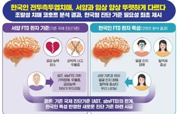 한국인 전두측두엽치매 환자의 증상이 서양 환자와 뚜렷하게 다르며 기존 국제 진단기준만으로는 정확한 진단에 한계가 있는 것으로 나타낫다.