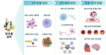 ◆알코올 섭취 → 산화 스트레스·염증 반응 → 뇌·신경계·호르몬 조절 변화 → 장기 손상