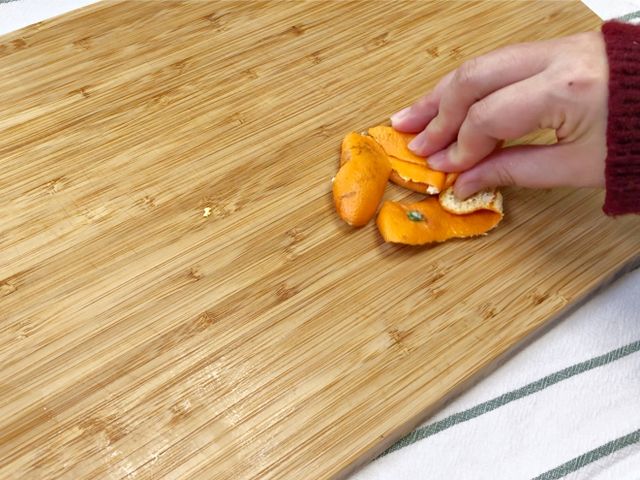 귤껍질로 문질러 닦아주면 기름기와 냄새 제거에 도움이 돼요.