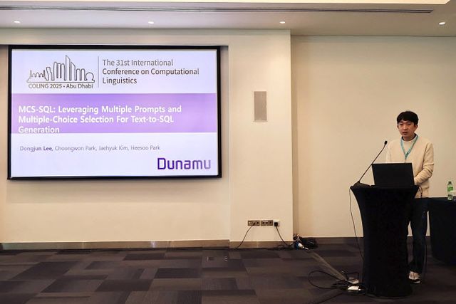 먼저, 두나무 머신러닝(ML)팀은 1월 아랍에미리트 아부다비에서 열린 국제전산언어학술대회 ‘콜링 2025(COLING 2025)’ 메인 콘퍼런스에서 텍스트-SQL 변환 관련 연구 논문을 발표했다. 콜링은 자연어 처리(NLP)와 전산언어학 분야에서 세계적으로 권위 있는 국제 학회로, 심사 기준이 엄격하다.