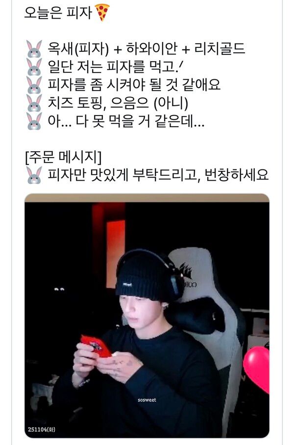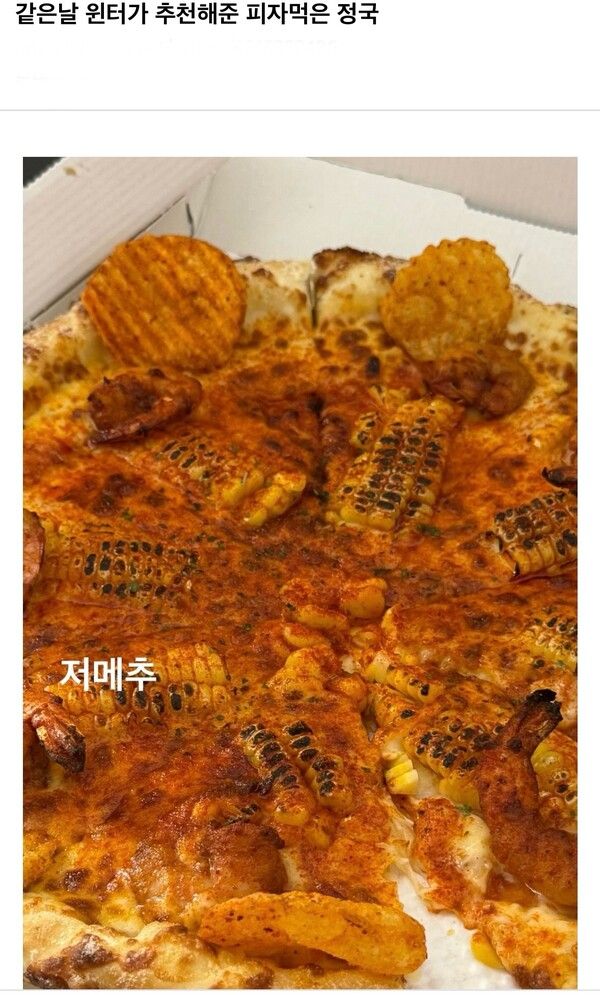 같은날 윈터가 추천해준 피자먹은 정국, 해당 피자는 노모어 옥새피자로 알려졌다.