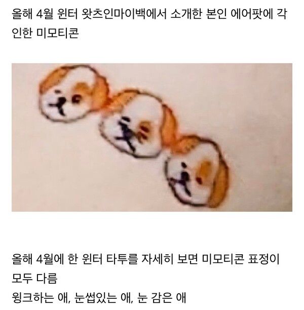 또한 정국 윈터 문신의 의미가 미모티콘이라는 데서 이 의미가 있다는 팬들의 생각이다. 영상통화를 할 때 둘 중 한 명의 캐릭터가 강아지였을 가능성이 높다는 것이다.