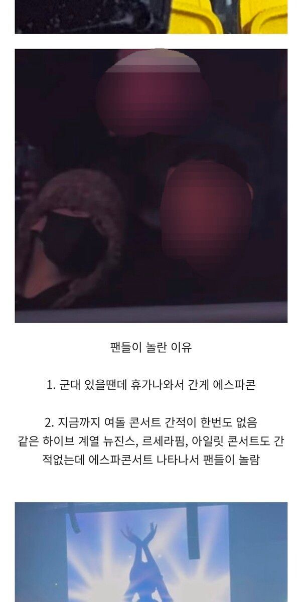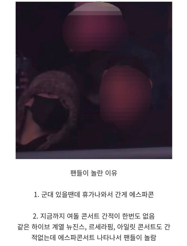 그리고 같은 하이브 계열도 아닌 에스파 콘서트에 뜬금없이 나타나서 놀랐던 상황이었다고.