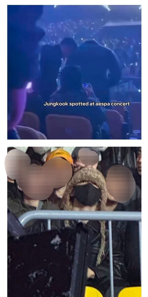 실제로 팬들이 촬영한 사진에는 얼굴을 모자로 깊이 눌러써 거의 가린 채 에스파 콘서트장을 찾은 정국의 모습이 담겨 있다.