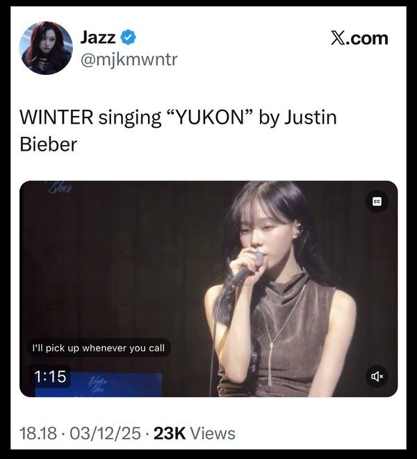 열애설을 뒷받침하는 또 다른 요소는 음악 취향의 겹침이다. 최근 윈터가 팬미팅에서 언급한 인디곡 ‘기다린만큼 더’를 정국이 라이브 방송에서 재생한 장면이 포착되면서, 두 사람의 연결 고리로 해석되고 있다.