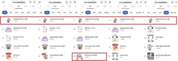 지난 16일 출시된 ‘도로롱의 메리크리스마스’ 이모티콘은 17일 집계된 종합 순위와 10대부터 40대까지의 인기 순위에서 모두 1위를 달성했다. 50대 이상 부문에서도 3위에 올랐으며, 기존 상품인 ‘승리의 여신: 니케 도로롱’ 이모티콘이 인기순위 5위에 재진입하는 역주행 현상도 나타났다.