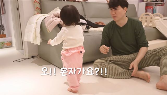 14개월인 재이는 엄마, 아빠의 손을 잡고 걸어다닐 수 있게 됐다. 박수홍은 딸의 손을 잡고 집을 돌아다니다 "이제 재이가 손 잡고 집 안 어디든지 다닌다. 조금 있으면 혼자서 아빠한테 달려올 것 같다. 진짜. 눈물 날 것 같다"고 말했다.