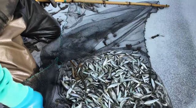가물치를 찾던 중 예상치 못한 장면이 펼쳐졌다. 물 위로 일렁이는 물결을 보고 바람 때문이라고 생각했지만, 자세히 관찰한 결과 수만 마리의 피라미가 다리 밑에 몰려 있는 것으로 확인됐다. 채니아빠 부부는 족대를 이용해 피라미를 잡기 시작했고, 한 번에 수십 마리씩 걸러낼 정도로 개체수가 많았다.
