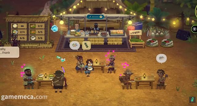 게임에서 운영하는 식당도 달라진다. 인 더 정글에는 호수가 있고 민물생선도 있지만 회로 먹을 수 없다. 따라서 여기서는 반쵸 스시가 아니라 '반쵸 그릴'을 운영한다. 황재호 대표는 "반쵸가 운영하는 정글 마을 식당이다. 횡(좌우)으로만 진행되던 반쵸 스시와 다르게 여러 방향에 있는 손님에게 음식을 대접해야 한다. 마을 주민들의 호감도가 오르면 손님으로 식당에 찾아온다"라고 말했다. 영상을 통해 야자수 열매를 칼로 도려내어 주스를 만드는 모습을 볼 수 있다.