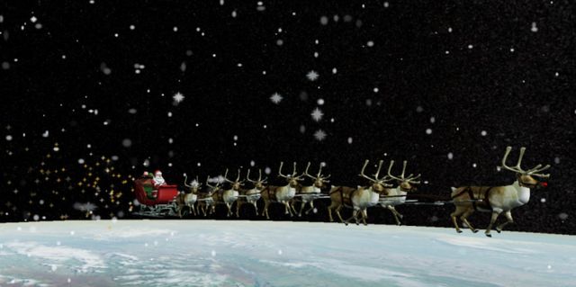 순록 9마리가 끄는 썰매를 타고 비행을 시작한 산타. NORAD 홈페이지