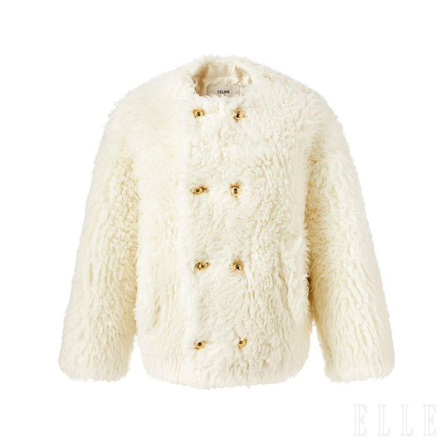 금장 버튼 디테일의 시어링 재킷은 6백90만원, Celine.