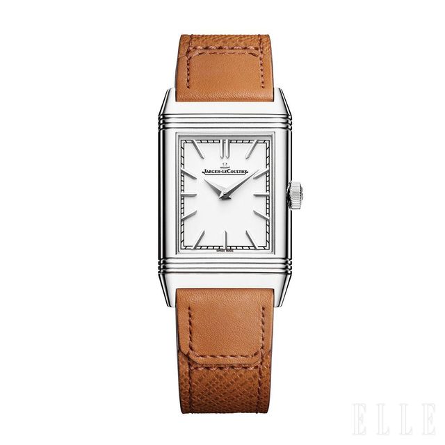 클래식한 레더 스트랩과 스틸 케이스의 조화가 돋보이는 리베르소 워치는 1천2백85만원, Jaeger-lecoultre.