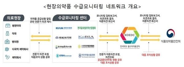 현장의약품 수급모니터링 네트워크는 지난 2017년부터 식약처와 한국희귀·필수의약품센터가 의약품 공급상황을 원활히 파악하여 대처할 수 있도록 구축한 정보수집 체계이다. 의약품 수급 문제 발생 시 환자 영향, 대체가능 여부 등 전문가 의견을 수렴해 합리적인 조치 방안을 신속히 마련하기 위해 운영하는 사업이다.