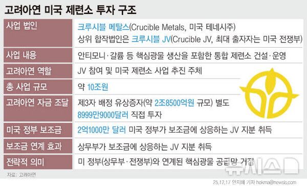 이와 함께 고려아연은 미국 내 통합제련소 건설 프로젝트가 미국 정부의 핵심광물 공급망 강화 정책에 맞물린 전략적 투자라는 점도 강조했다.