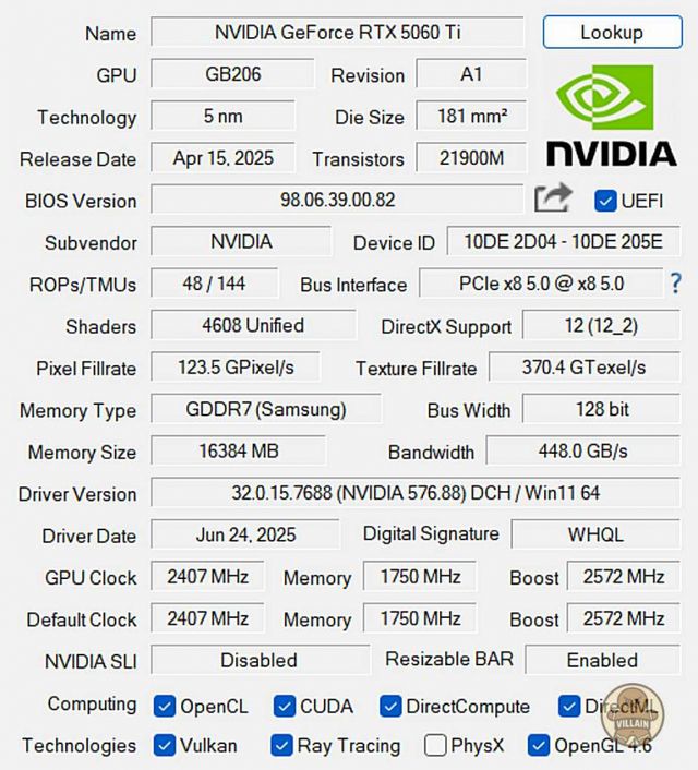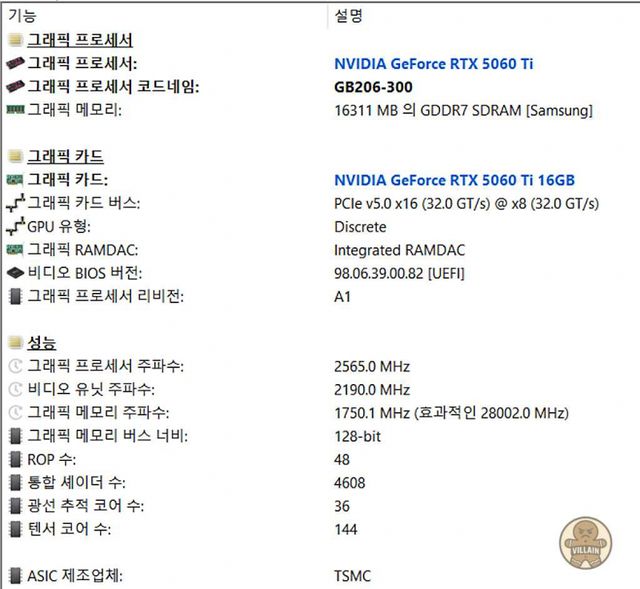 칩셋 : NVIDIA GeForce RTX 5060 Ti
