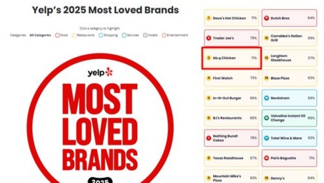 2004년 설립된 옐프는 월간 방문자 수가 1억 명에 달하는 미국 내 영향력 1위의 로컬 리뷰 및 검색 서비스다. 이번 순위는 브랜드 평점과 재방문율, 검색량, 리뷰 수 등을 다각도로 분석해 산출됐다. BBQ는 소비자 만족도와 호감도 부문에서 높은 점수를 얻었으며, 지역별로는 서부 3위, 중서부 2위, 남부 2위를 기록하는 등 미국 전역에서 고른 인기를 확인했다.