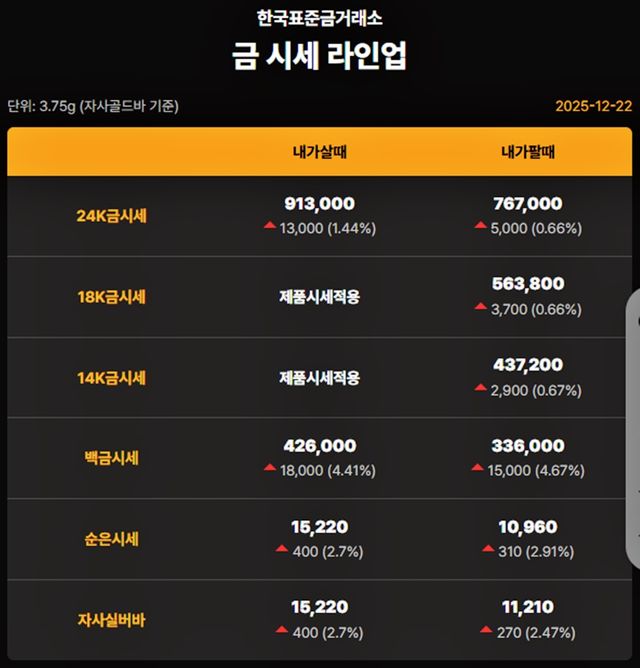 순금 : 매입가 91만 3000원 / 매도가 76만 7000원