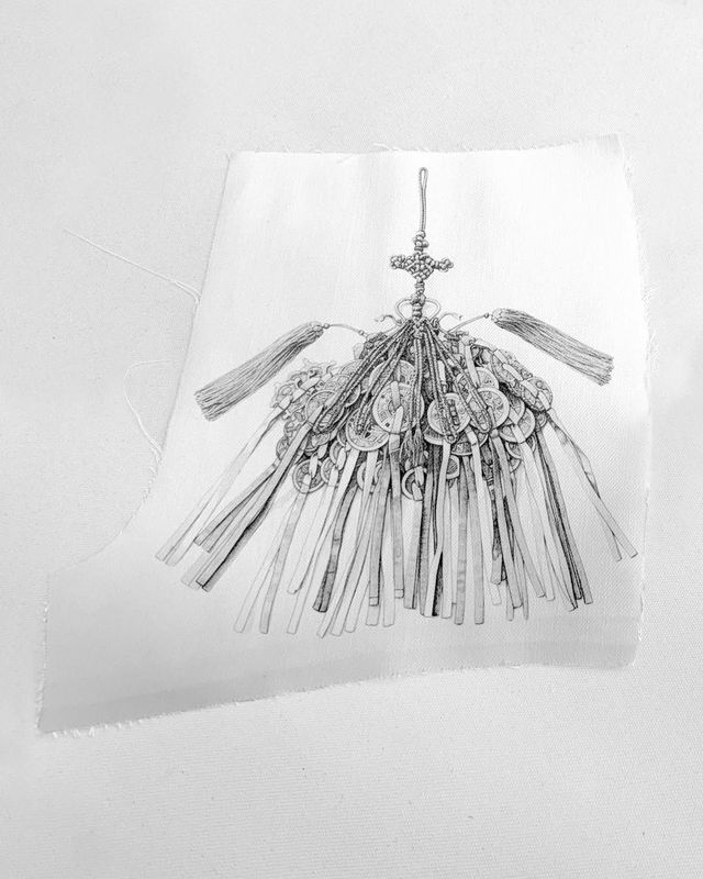 〈like JENNIE〉 무대에서는 전통과 현대의 조화가 절정을 이뤘습니다. 한국 전통 복식인 동정과 고름에서 영감을 얻은 상의에 서양 복식의 코르셋이 결합됐죠. 덕분에 전체적인 실루엣에 긴장감과 입체감이 더해졌고, 여성의 신체가 지닌 균형과 힘이 또렷하게 드러났습니다. 하의에는 펜화 기법을 활용해 노리개와 은장도 등 한국 공예를 상징하는 이미지가 섬세하게 담겼고, 생사 댕기 매듭을 더해 유려한 볼륨감까지 더했죠.
