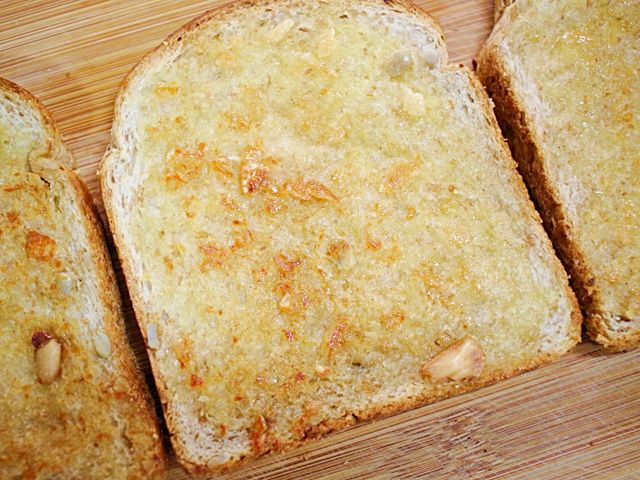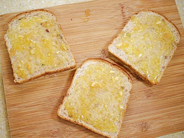 달콤하고 알싸한 마늘버터를 식빵3장에 고루 발라주세요.