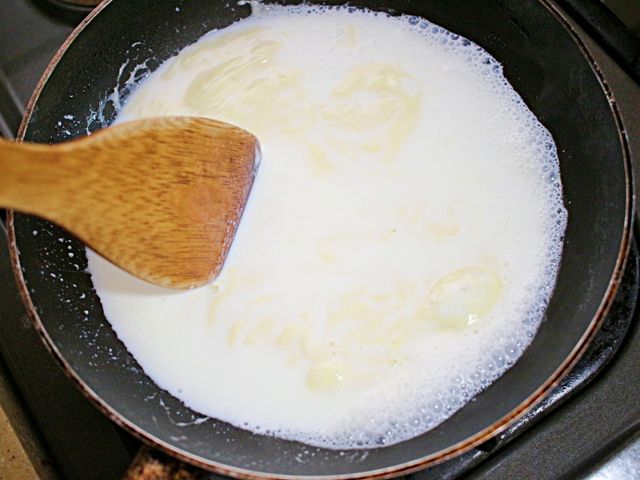 작은사이즈 팬에 우유1/3컵(종이컵)
