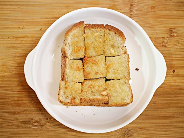 마늘버터를 바른 식빵을 구워주세요.