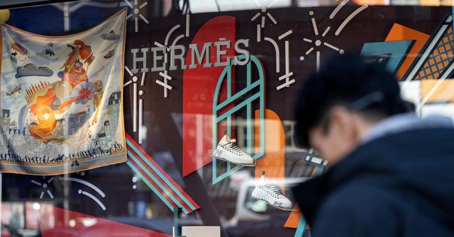 서울 중구 신세계백화점 본점 외벽에 에르메스 제품 등이 전시돼 있다. / 뉴스1