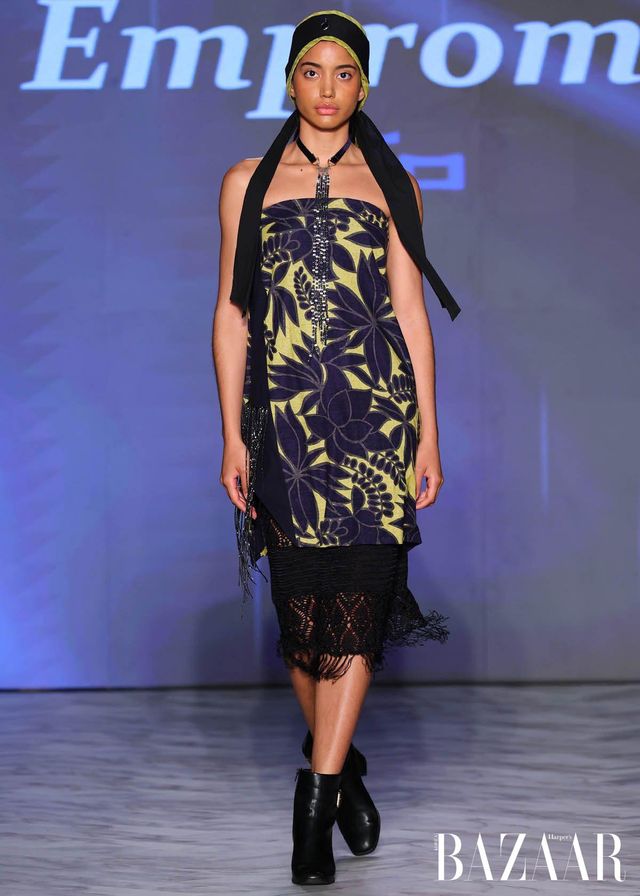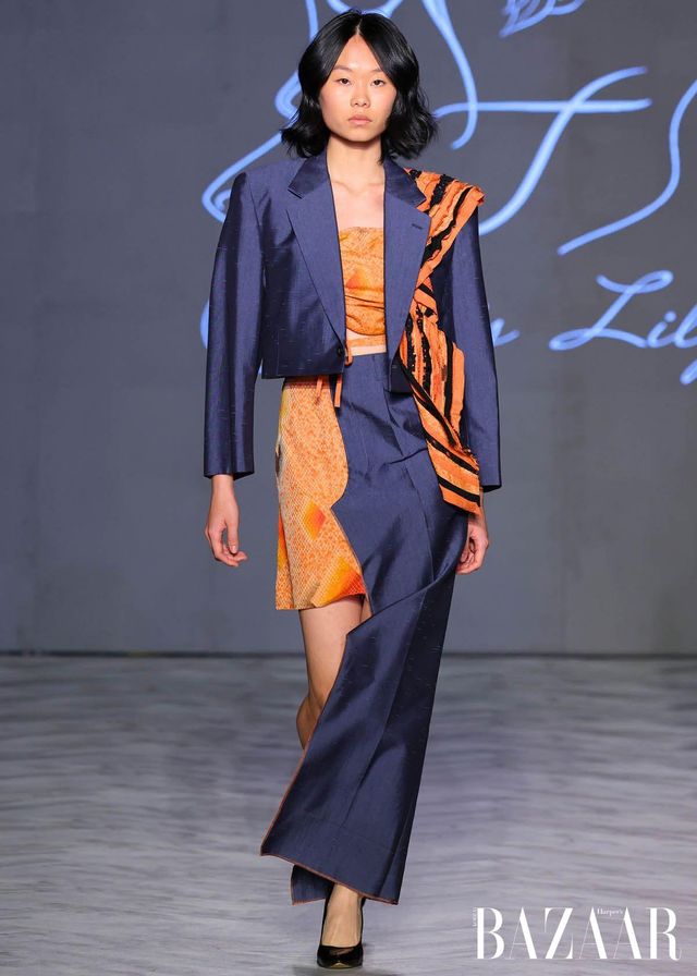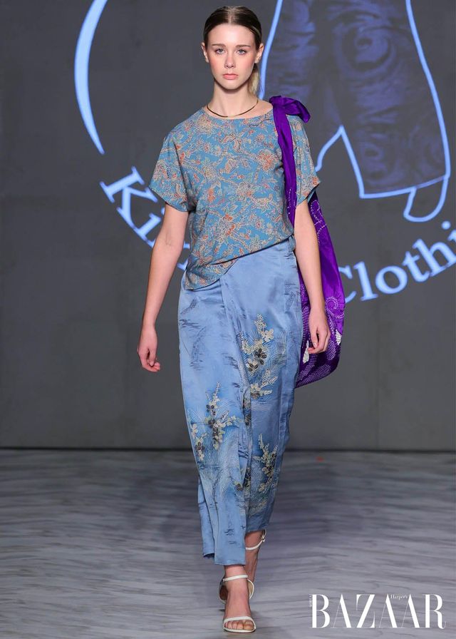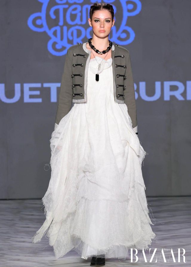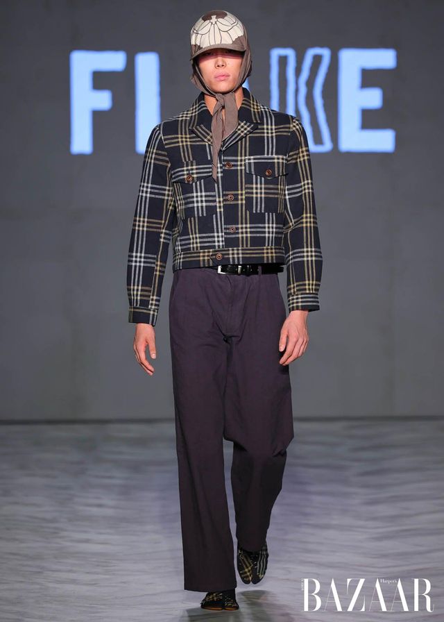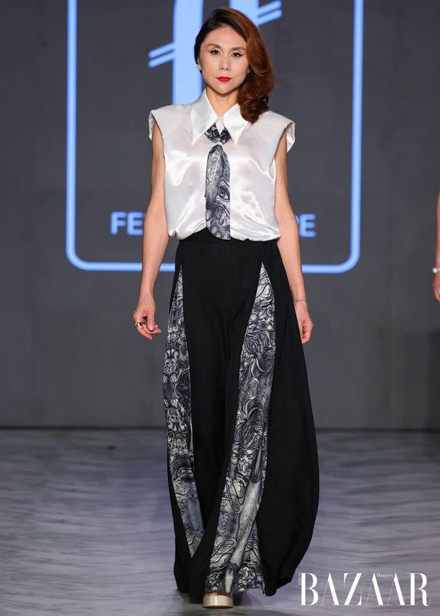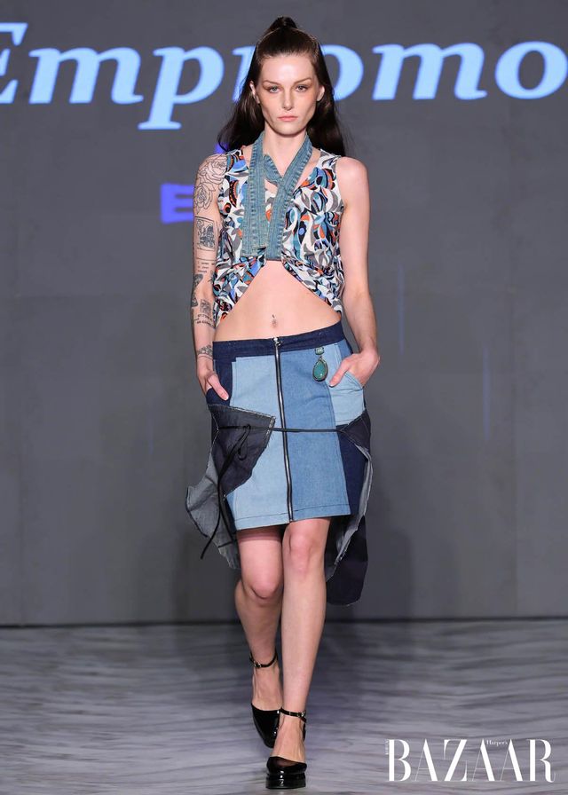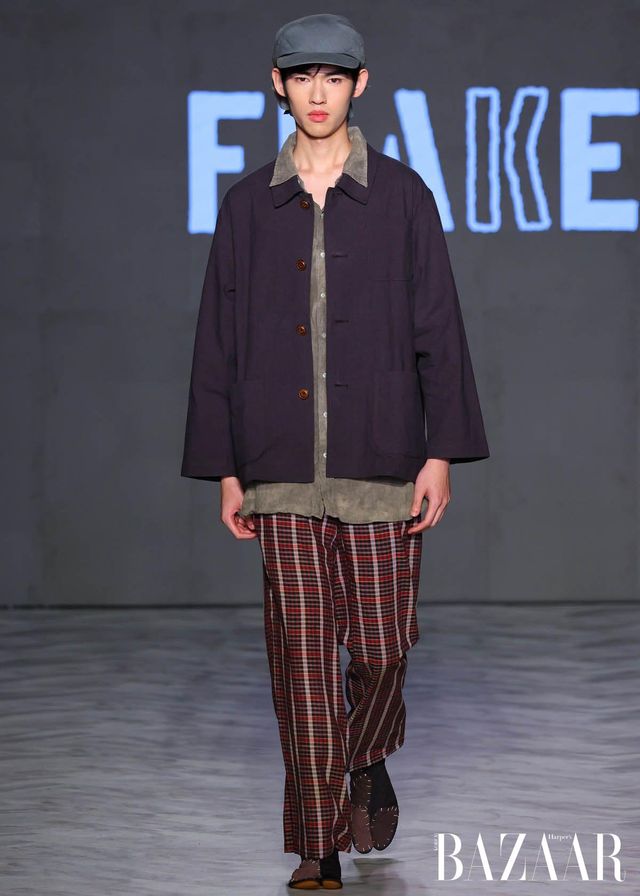 Remake by FLAKE는 일본 빈티지 소재를 역사 속 군복과 민간복의 형태와 결합한 컬렉션을 선보였다. 체크 이불과 후톤 원단, 기모노 직물, 현지 제작 천 등을 활용해 각 작품에 담긴 질감과 이야기를 존중하며, 과거의 실용성과 절제된 아름다움에 대한 경외를 표현했다. Empromo는 문화적 유산을 보존하는 동시에 일상 속 우아함을 기리는 컬렉션을 이야기한다. 수작업 염색 직물과 금박 디테일을 통해, 색과 장식 하나하나에 정교함을 더하며 풍부하면서도 섬세한 실루엣을 완성했다.