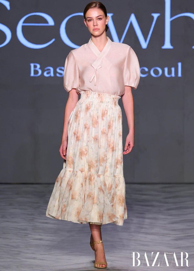 ‘서화의 정원(Garden of Seowha)’이라는 컬렉션으로 밴쿠버 패션위크에 첫선을 보인 서화. 한국 전통을 기반으로 현대 여성을 위해 세련되게 재해석한 이번 컬렉션은 자연의 향기에서 아이디어를 얻어 완성됐다. 깔끔한 테일러링과 레이어드 실루엣, 실크와 자카드 등 고급 소재를 활용해 한복의 요소를 현대적으로 풀어냈으며, 섬세한 자수와 부드러운 색조를 통해 우아함과 강인함이 공존하는 미학을 제안한다. 전통과 현대를 잇는 디자인은 차분하면서도 자신감 있는 여성상을 그려낸다.