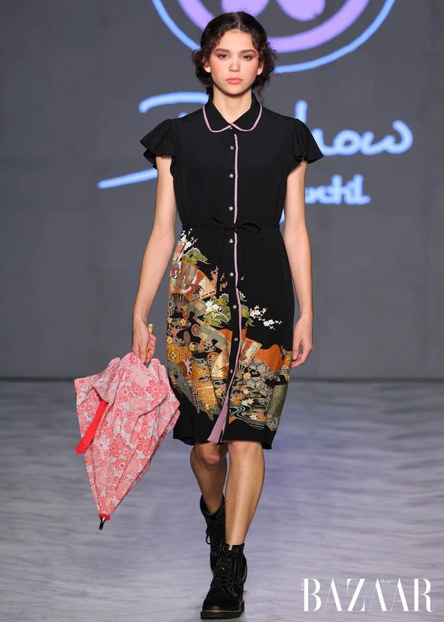 Kouyama Nami가 선보인 컬렉션은 일본 전통 기모노를 현대적이고 실용적인 감각으로 구현했다.지금까지 1천점이 넘는 맞춤 리메이크 작업을 통해 장인정신을 계승해온 디자이너는 할머니의 기모노에 대한 애정에서 출발해 빈티지 실크 소재에 서양식 실루엣의 편안함을 더했다. 전통의 우아함과 일상성을 조화롭게 결합한 이번 컬렉션은 기모노 문화를 현대인의 삶 속으로 자연스럽게 끌어들인다.