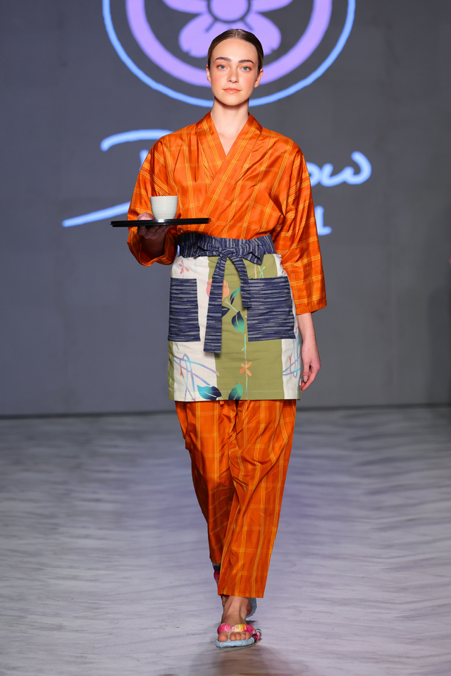 GURL 23은 원주민 문화에서 영감을 받아 선댄스 의식과 식스티즈 스쿱에서 출발한 깊이 있는 서사를 BROKN AROW 컬렉션으로 풀어냈다. 바느질된 직물과 세심한 시각적 디테일을 통해 진실, 치유, 화해라는 메시지를 강렬하면서도 정교하게 전달한다. NITENMON의 ‘Time and Distance’ 컬렉션은 고대의 장인정신과 현대 디자인을 연결하며, 빈티지 14인치 폭의 실크 기모노 원단을 새롭게 해석했다. 기모노가 지닌 초월적 아름다움을 새로운 세대와 다시 잇는 시도다.