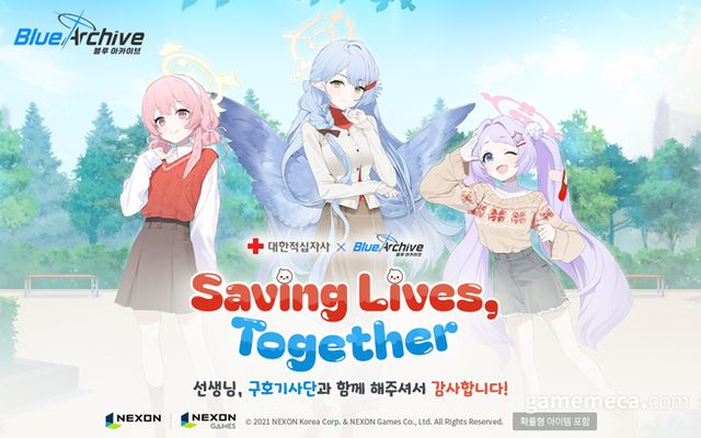 넥슨은 대한적십자사와 함께 블루 아카이브 IP로 진행한 '세이빙 라이브스 투게더!(Saving Lives, Together!)' 캠페인을 통해 판매한 상품 수익금을 전액을 기부했다.