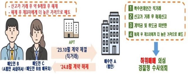 계약 해제 과정에서 계약금과 중도금 반환이 없었고, 해제 가능성을 열어둔 특약이 확인돼 경찰 수사가 요청됐다. 가족 간 신고가 거래 후 장기간 계약을 유지하다 해제하고 제3자에게 더 낮은 가격으로 매도한 사례 역시 시세 교란 가능성이 크다고 판단돼 수사 의뢰 대상이 됐다.