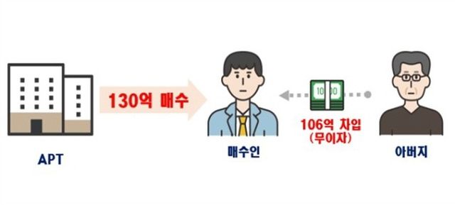 적발 사례를 보면, 부모나 법인 등 특수관계인으로부터 주택 매수 자금을 빌리면서 차용증이 없거나 이자 지급 여부가 불분명한 거래가 496건으로 가장 많았다. 실제로 서울 A구의 한 아파트를 130억원에 매입하면서 이 중 106억원을 부친에게 무이자로 빌린 사례는 '특수관계인 차입금 과다'로 분류돼 국세청에 통보됐다.