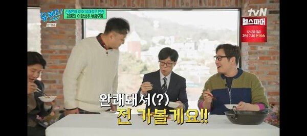 뉴시스 보도에 따르면, 김수용은 24일 방송된 tvN 토크 예능물 '유퀴즈 온 더 블럭'에서 김풍이 요리한 어향상추 볶음우동을 맛 봤다.