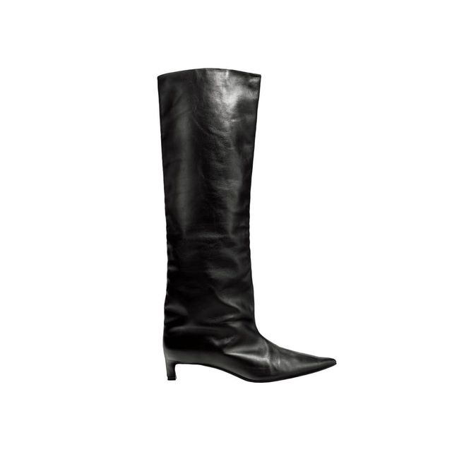 뾰족한 앞코가 특징인 레더 롱부츠는 2백31만원, Jil Sander.