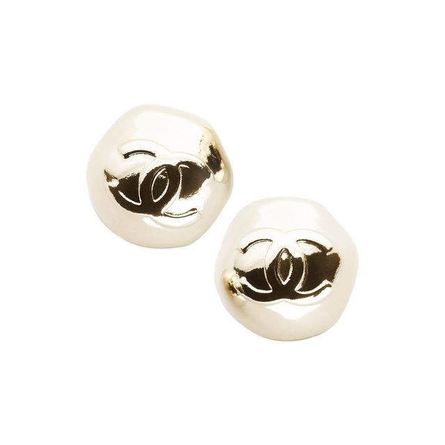 로고 디테일의 볼 이어링은 가격 미정, Chanel.