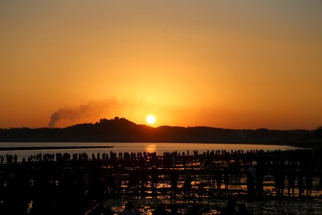 서해라 해돋이 이미지가 약하다고 느끼기 쉬운데 왜목마을은 지형 덕분에 해가 뜨는 방향이 열린 드문 곳이다. 서해 특유의 잔잔한 물결 위로 떠오르는 해를 보는 경험은 동해와 결이 다르고 해가 빠르게 높아지기보다 수평선 위에 오래 머무는 느낌이 있어 여유롭다.