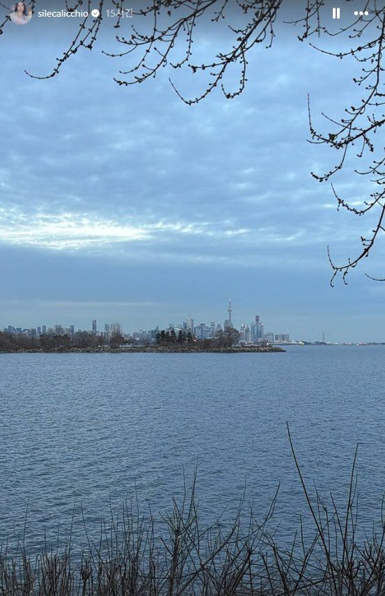 칼리키오는 25일 자신의 SNS에 온타리오 호수 근처에서 캐나타 토론토의 랜드마크인 CN 타워를 바라본 사진을 게시했다.