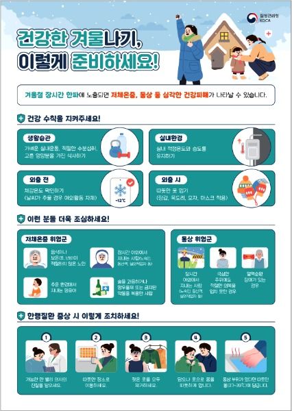 한랭질환은 추위에 오래 노출되면서 정상 체온이 급격히 떨어지는 저체온증과 손·발 등 말단 부위 조직이 손상되는 동상이 대표적이다.