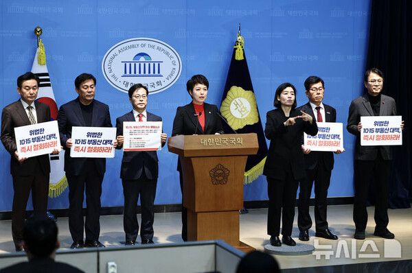 뉴시스 보도에 따르면, 김 의원은 이날 국회 소통관에서 기자회견을 열고 "이재명 정부는 지난 10·15 대책으로 서울 전역과 경기 12개 지역을 토지거래허가구역, 투기과열지구, 조정대상지역의 규제지역으로 동시 지정했다"며 "두 달이 지난 지금 주민들의 고통은 이루 말할 수가 없다"고 말했다.