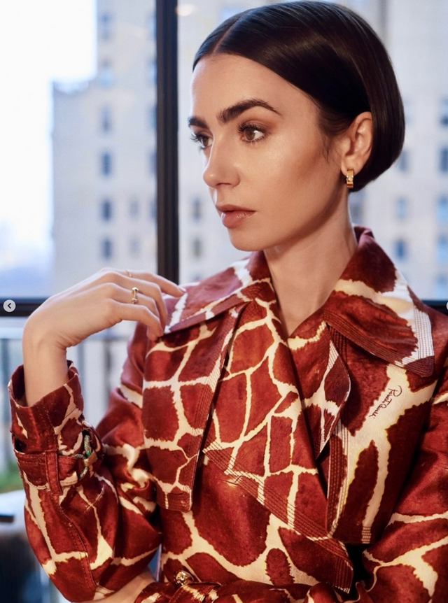 이국적인 패턴의 Roberto Cavalli 트렌치코트에 Fendi의 스팽글 바게트 백을 매치한 에밀리의 스타일은 단번에 시선을 사로잡는다. 강렬한 패턴과 텍스처가 중심을 이루는 만큼, 메이크업은 색조를 절제해 스타일링의 균형을 섬세하게 조율했다. 화려함과 여백이 공존하는 스타일로 시즌 5 에밀리 패션이 지닌 성숙한 감각을 세련된 방식으로 드러낸다.