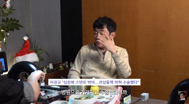 그러면서 이경규는 과거 ‘붕어빵’ 녹화 당시를 회상하며 “내가 ‘붕어빵’ 녹화하고 그때 내가 심장이 막힌 거다. ‘붕어빵’ 녹화 끝나고 병원으로 가가지고 수술했다니까. 시술을”라고 말했다.