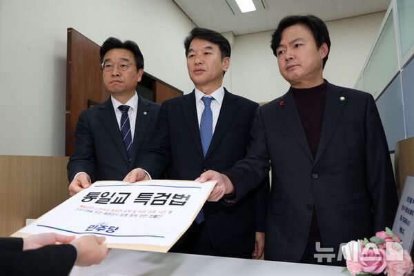 뉴시스 보도에 따르면, 문진석 민주당 원내수석은 이날 오후 이용우 원내부대표, 김현정 원내대변인과 국회 의안과를 찾아 자체 마련한 '통일교와 신천지의 정치권 유착 및 비리 의혹 사건 등 진상규명을 위한 특별검사 임명 등에 관한 법률안'을 제출했다.