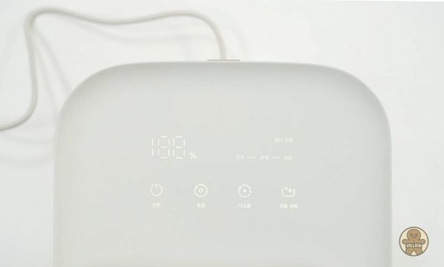 상단 조작부는 시크릿 버튼 방식이다. 평소에는 버튼이 거의 보이지 않다가, 전원을 켜면 필요한 아이콘만 은은하게 드러난다. 전원, 표준 모드, 저소음 모드, 자동 세척 모드로 구성되어 있는데, 기능 수가 많지 않아 오히려 편하다.