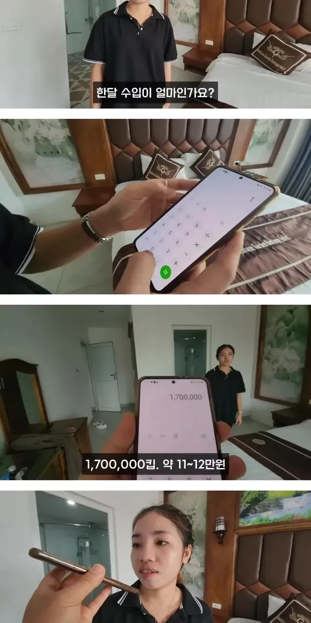 라오스 호텔에서 일하는 여성노동자 월급 수준,,