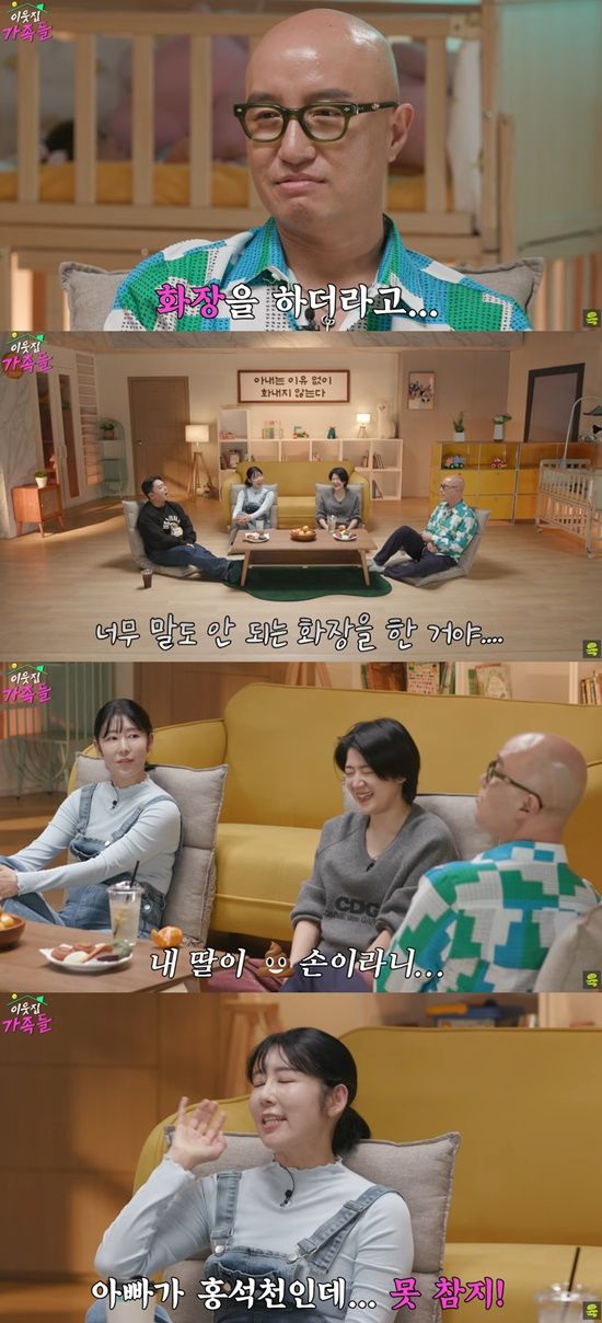 홍석천은 "우리 딸하고 사춘기 때 싸웠던 게 기억이 난다. 여중생인데 화장을 하더라. 너무 말도 안되는 화장을 한거다. 촌스럽게"라며 "못생기게 메이크업하고 예쁜척을 하더라"고 당시를 언급했다.