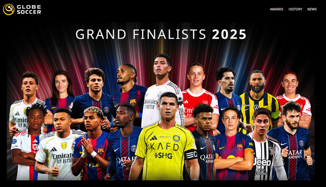 (엑스포츠뉴스 이우진 기자) 제16회 글로브 사커 어워즈 최종 후보 명단이 최근 공개된 가운데 발롱도르, 국제축구연맹(FIFA) 올해의 선수를 모두 거머쥔 우스망 뎀벨레(PSG)부터 40세 공격수 크리스티아누 호날두(알나스르)까지 후보에 모두 망라돼 관심을 끈다.